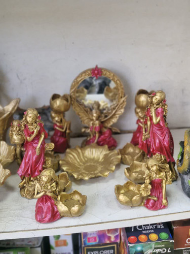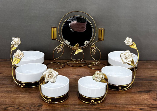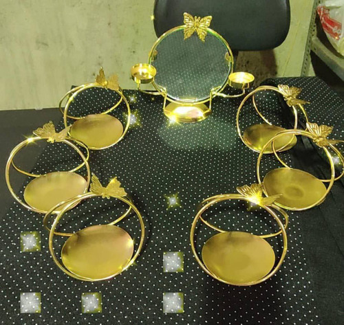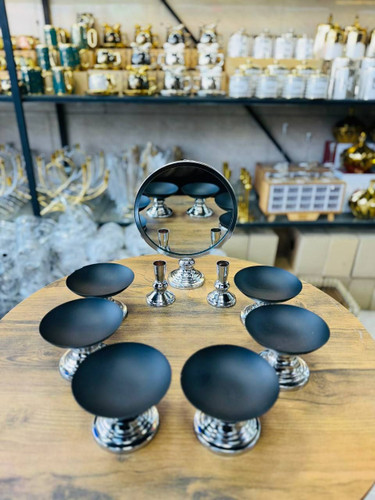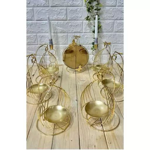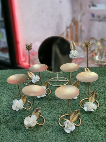 هفت سین فلزی گلدار همراه اینه و شمعدان