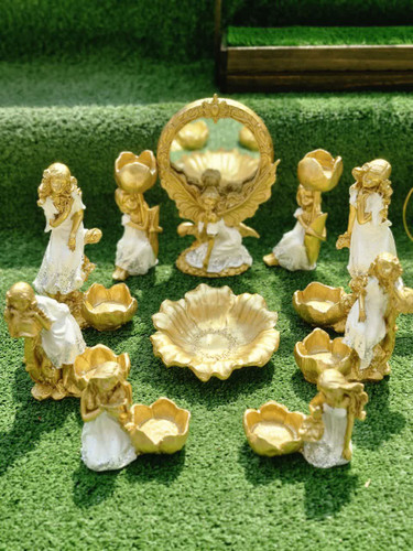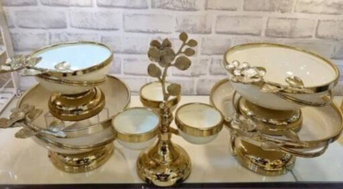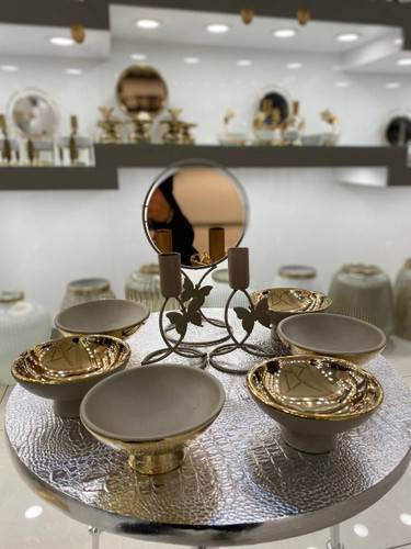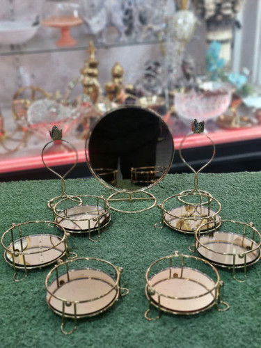 هفت سین فلزی کف آینه ای دایره . هفت سین طلایی
