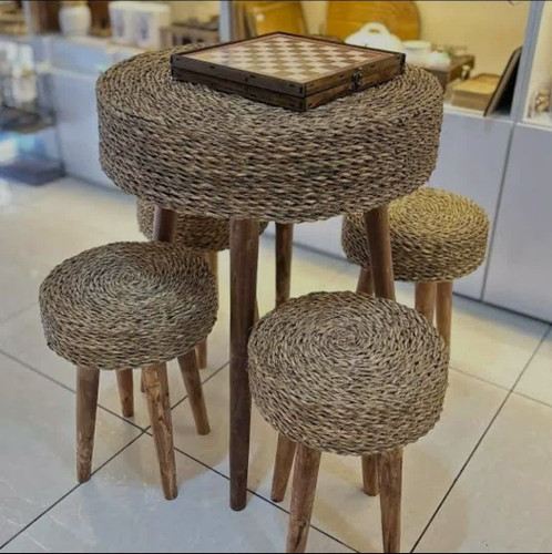 میز و صندلی حصیری گرد طرح ایکیا ( چهار عدد صندلی )