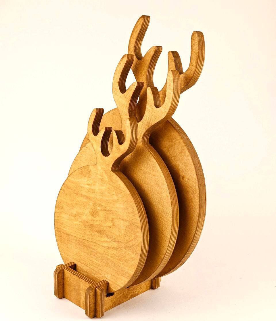 سینی 5 تکه چوبی . سینی 5 تکه پذیرابی چوبی طرح گل