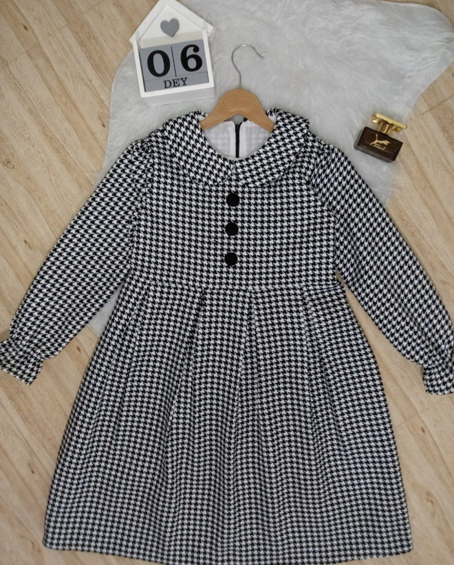 پیراهن دخترانه مزونی پشمی پیردوپل. پیراهن دخترانه مزون دوز