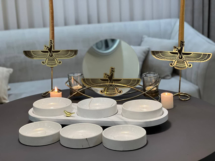 به همراه آینه شمعدان با نماد فروهر