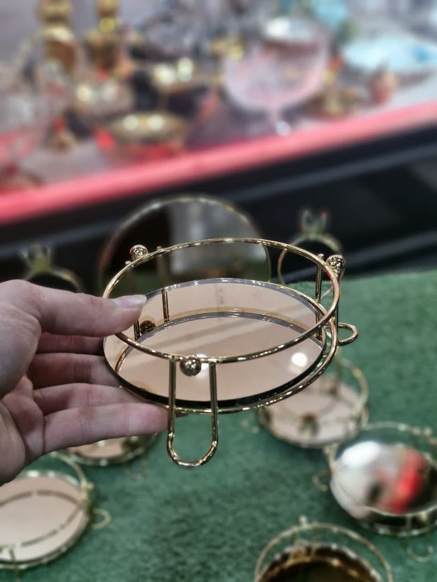 هفت سین فلزی کف آینه ای دایره . هفت سین طلایی