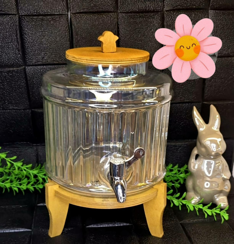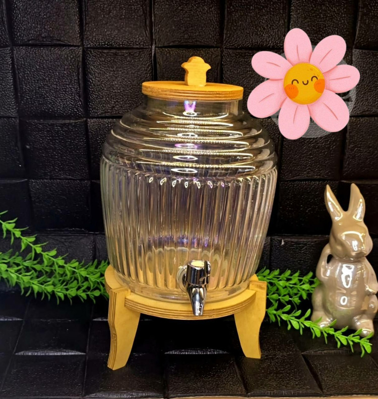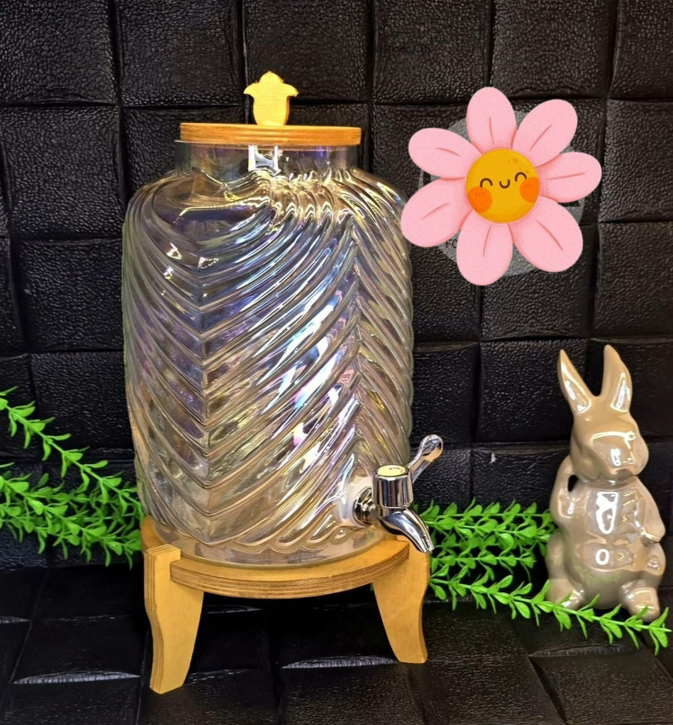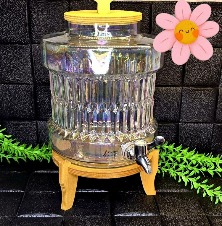 کلمن شیشه ای هفت رنگ .پایه و درب چوبی