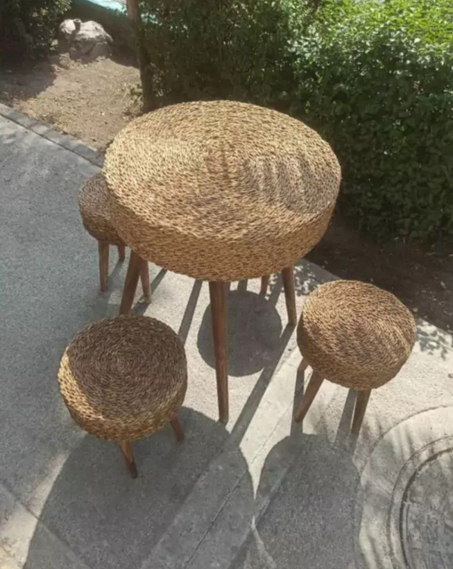 میز و صندلی حصیری گرد طرح ایکیا ( دو صندلی)