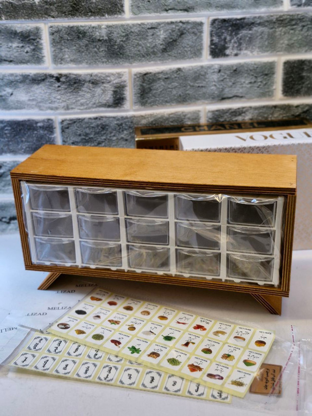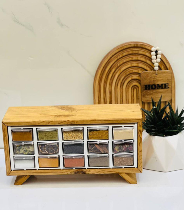 فایل ۱۵ کشو . فایل جا ادویه ۱۵ کشو چوبی
