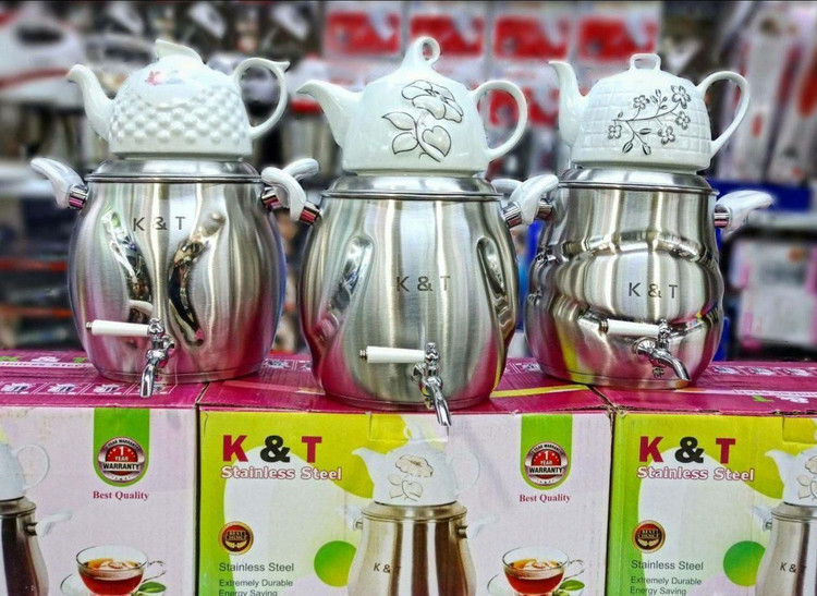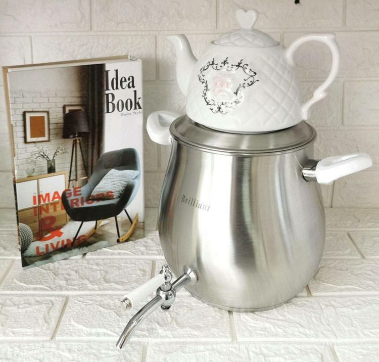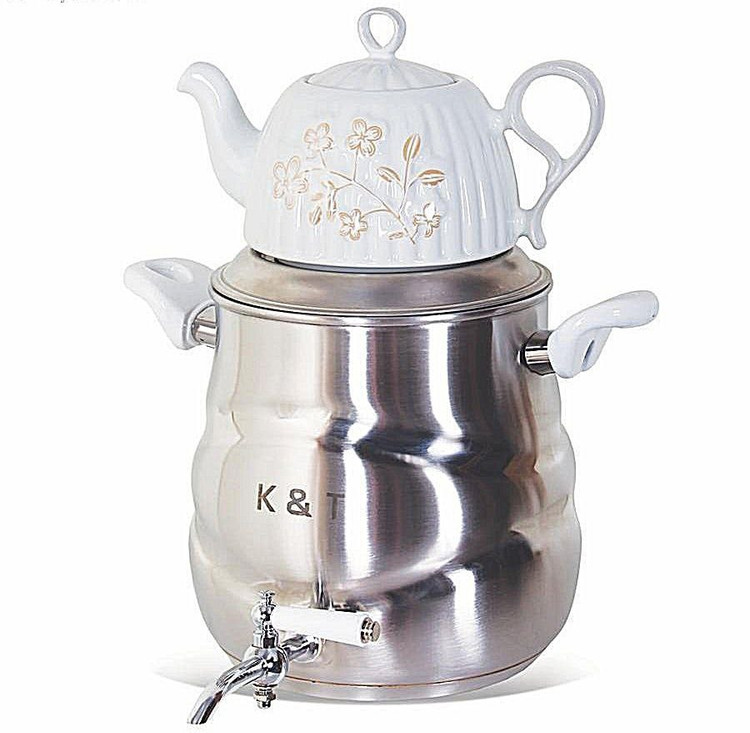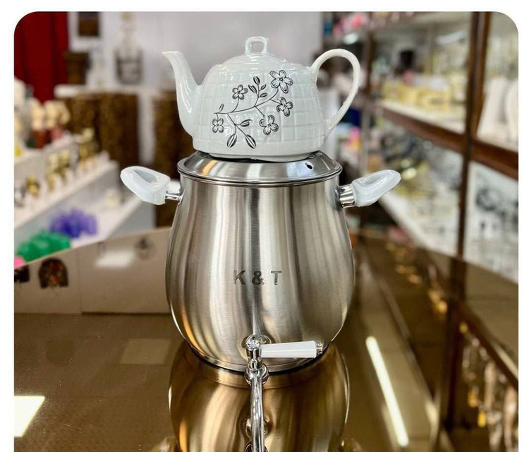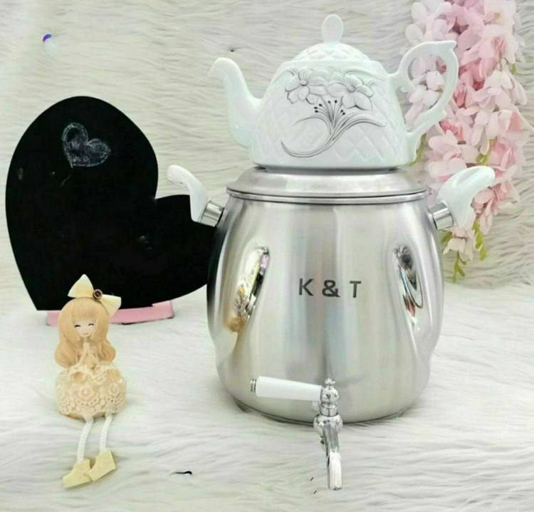 گنجایش ۶ لیتر ، کف چدن ۴ لایه ، کتری استیل اعلا قوری چینی
