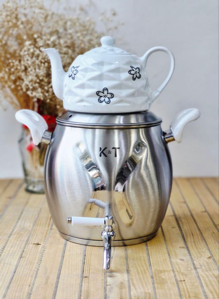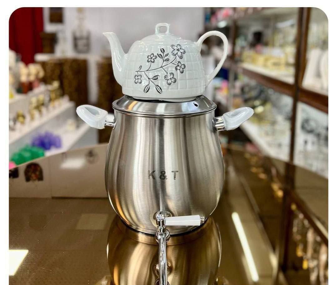 گنجایش ۶ لیتر ، کف چدن ۴ لایه ، کتری استیل اعلا قوری چینی
