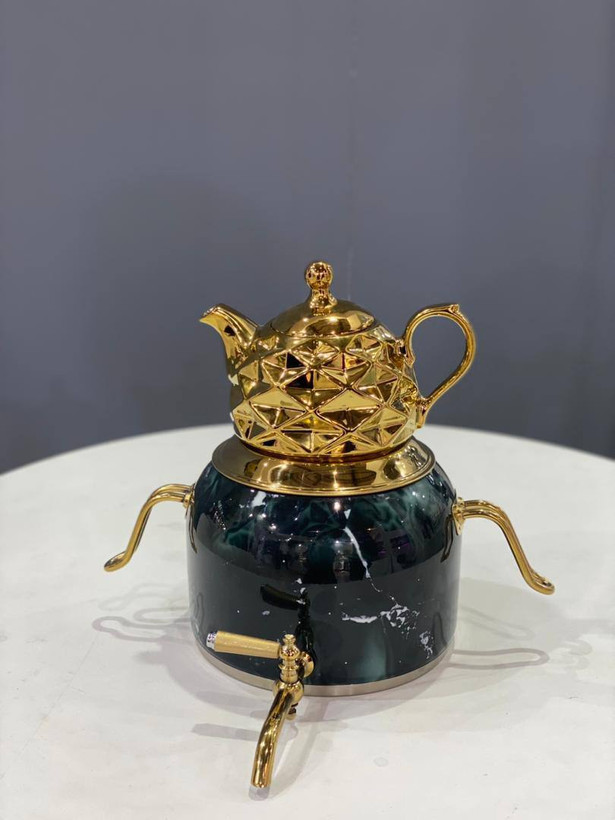 کتری قوری برندFR طرح سنگ ظرفیت ۶لیتری کفه چدن قوری چینی